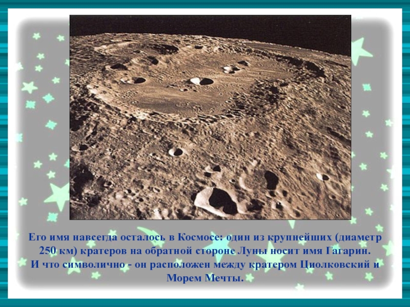 Слайд 17Его имя навсегда осталось в Космосе: один из крупнейших (диаметр