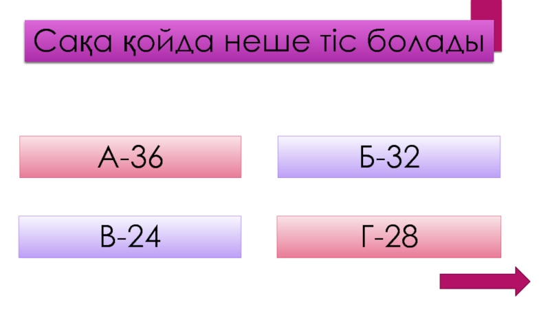 Сақа қойда неше тіс боладыА-36Б-32В-24Г-28