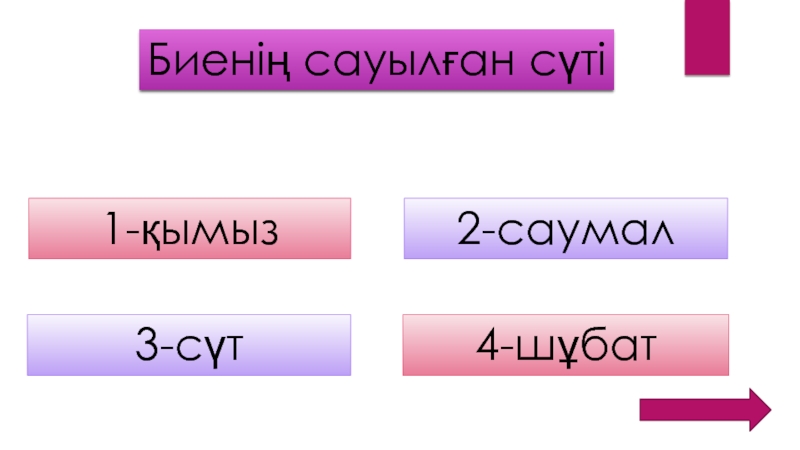 Биенің сауылған сүті1-қымыз2-саумал3-сүт4-шұбат