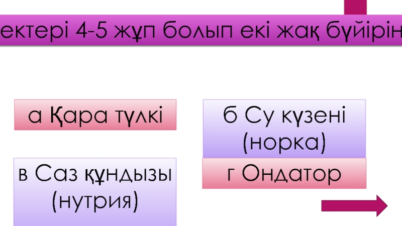 Емшектері 4-5 жұп болып екі жақ бүйіріндеа Қара түлкіб Су күзені(норка)в Саз құндызы(нутрия)г Ондатор