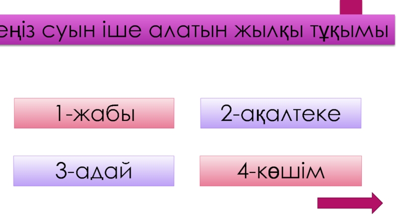 Теңіз суын іше алатын жылқы тұқымы1-жабы4-көшім2-ақалтеке3-адай
