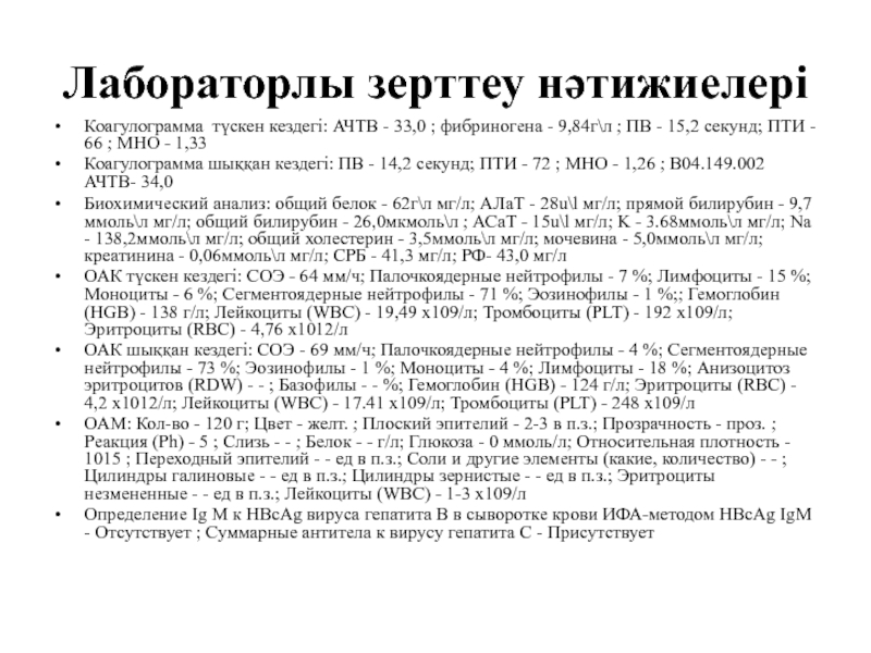 Слайд 8Лабораторлы зерттеу нәтижиелері