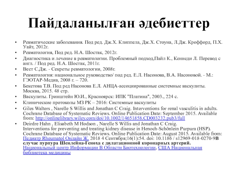 Клинические протоколы МЗ РК – 2016: Системные васкулиты