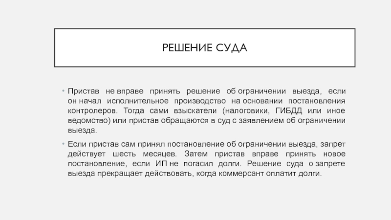 иное ведомство) или пристав обращаются в суд с заявлением об ограничении выезда.
