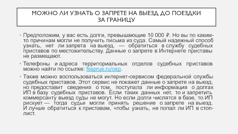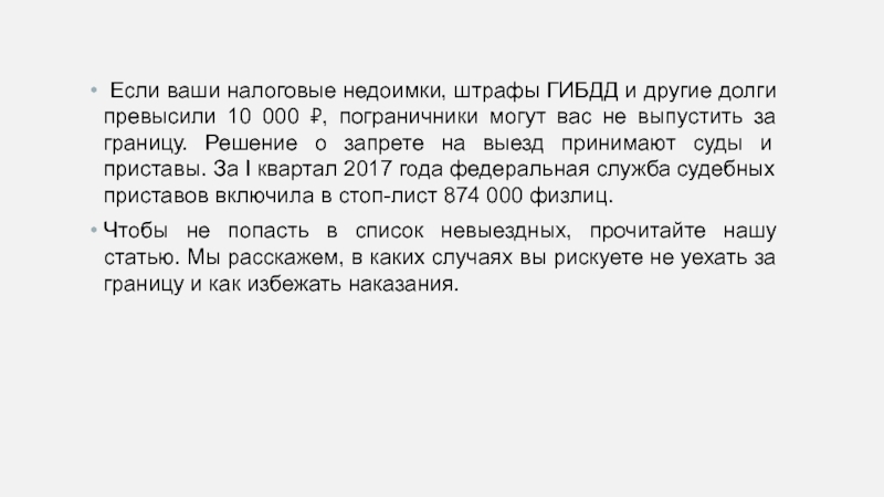 Слайд 1За какие долги не выпустят за границу, как узнать до