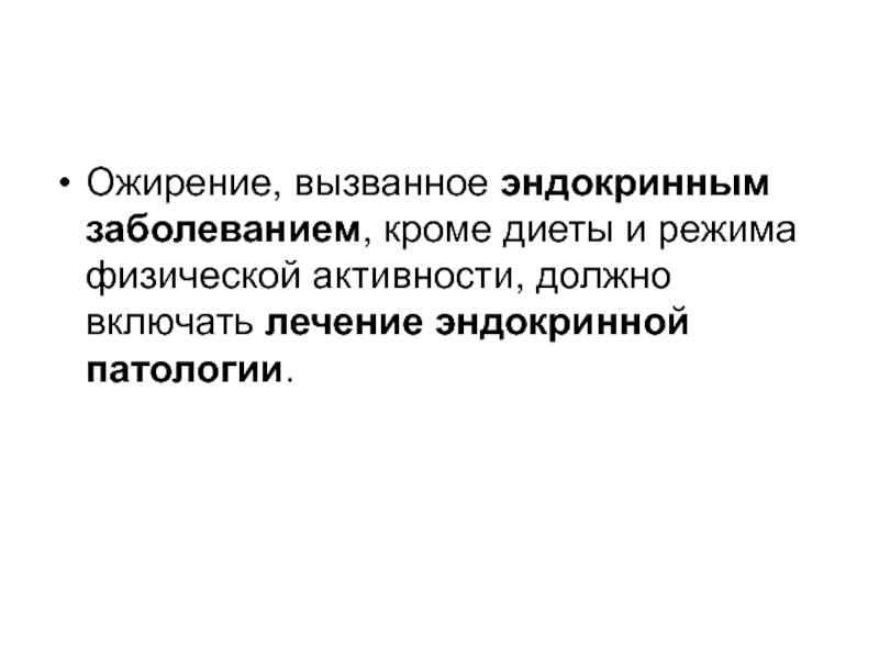 Слайд 53Ожирение, вызванное эндокринным заболеванием, кроме диеты и режима физической активности,