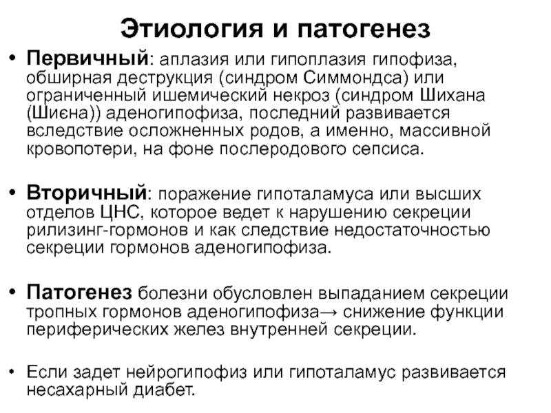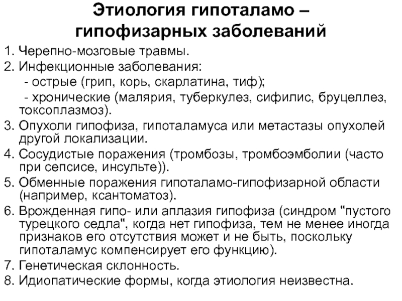 Слайд 8Этиология гипоталамо – гипофизарных заболеваний