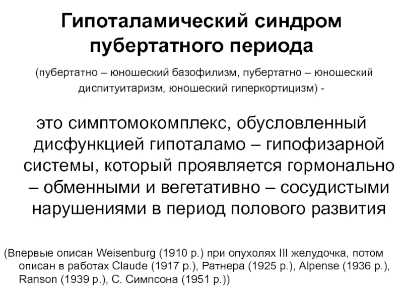 - гипоталамический пубертатный синдром.