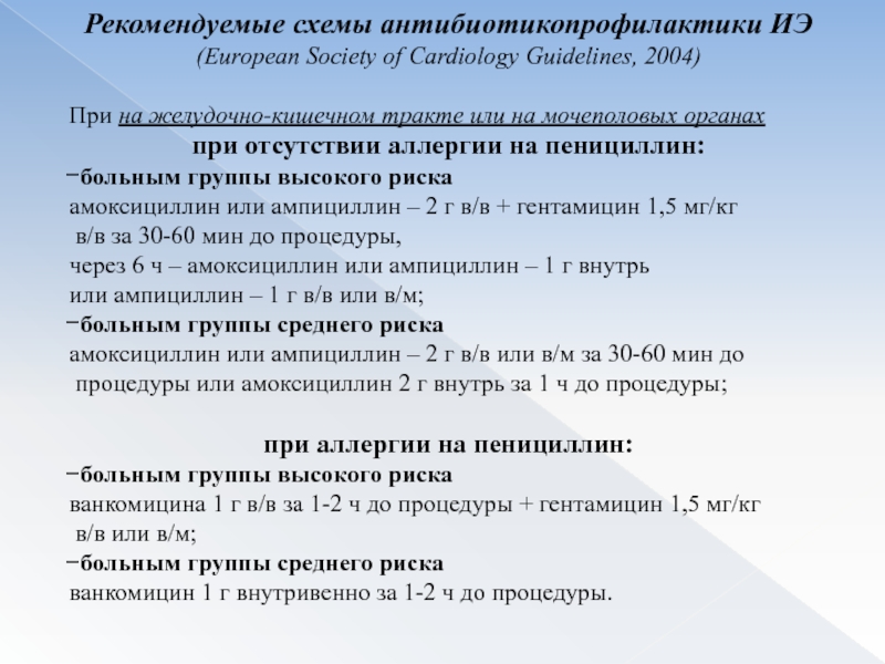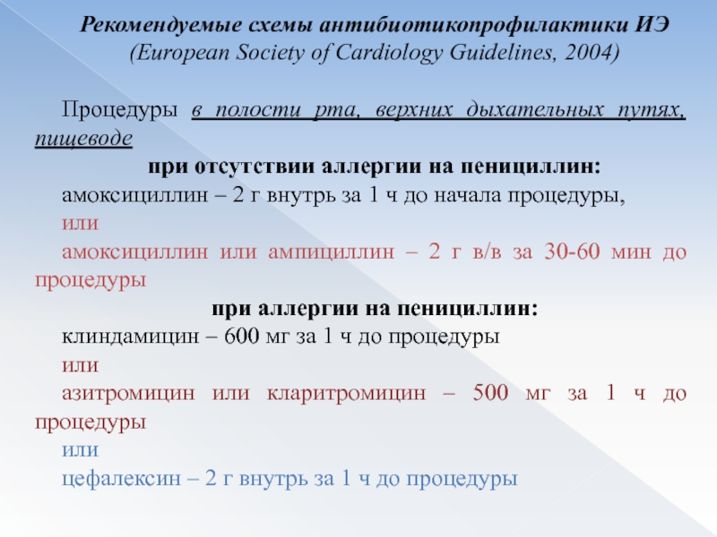 Слайд 60Рекомендуемые схемы антибиотикопрофилактики ИЭ