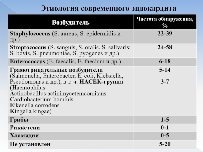 Слайд 13Этиология современного эндокардита