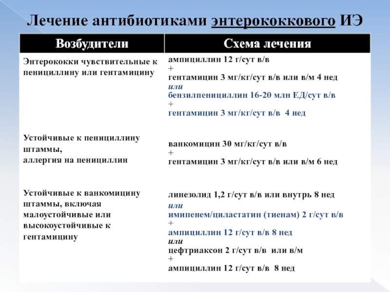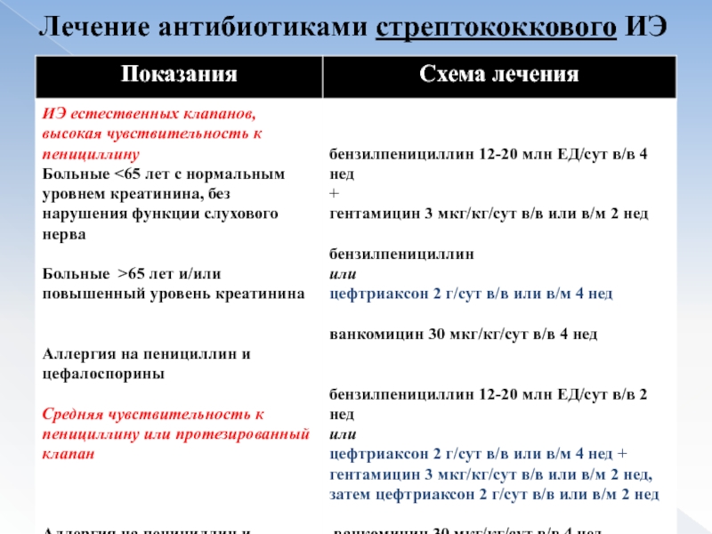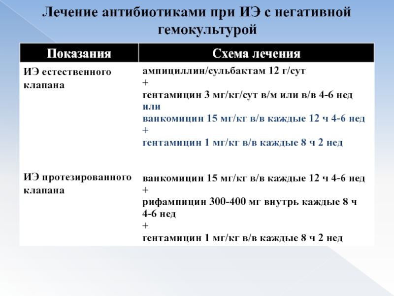 Слайд 50Лечение антибиотиками при ИЭ с негативной гемокультурой