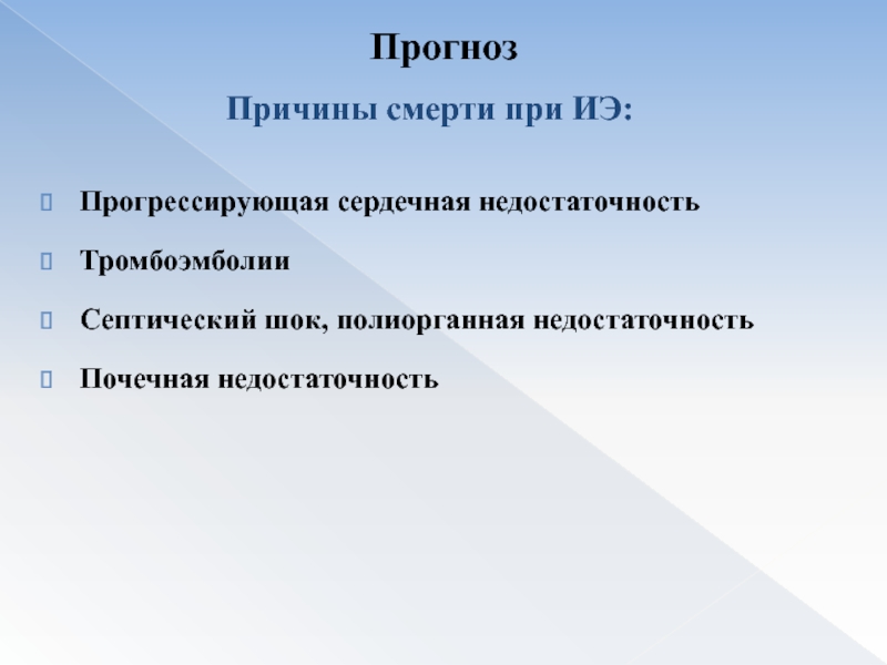 Причины смерти при ИЭ:
