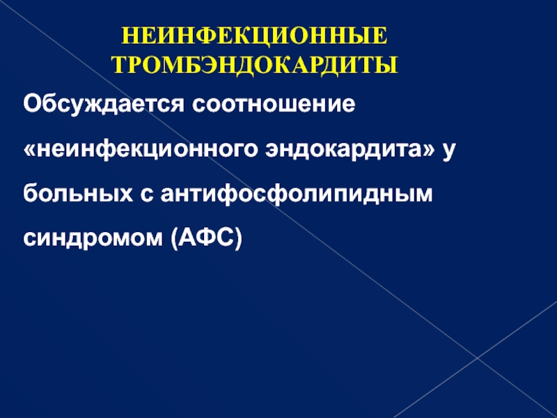 Слайд 10Обсуждается соотношение «неинфекционного эндокардита» у больных с антифосфолипидным синдромом (АФС)