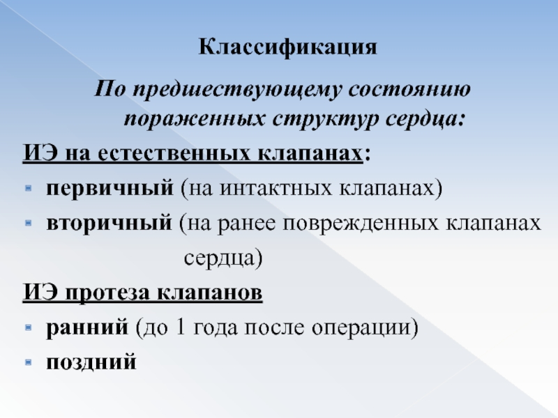 ИЭ на естественных клапанах:
