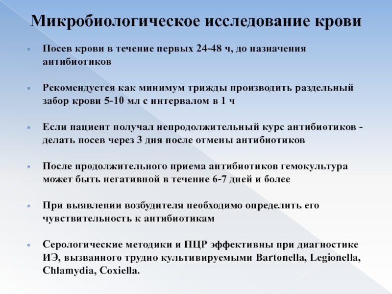 Отрицательные результаты бактериологиче-ского исследования крови через
