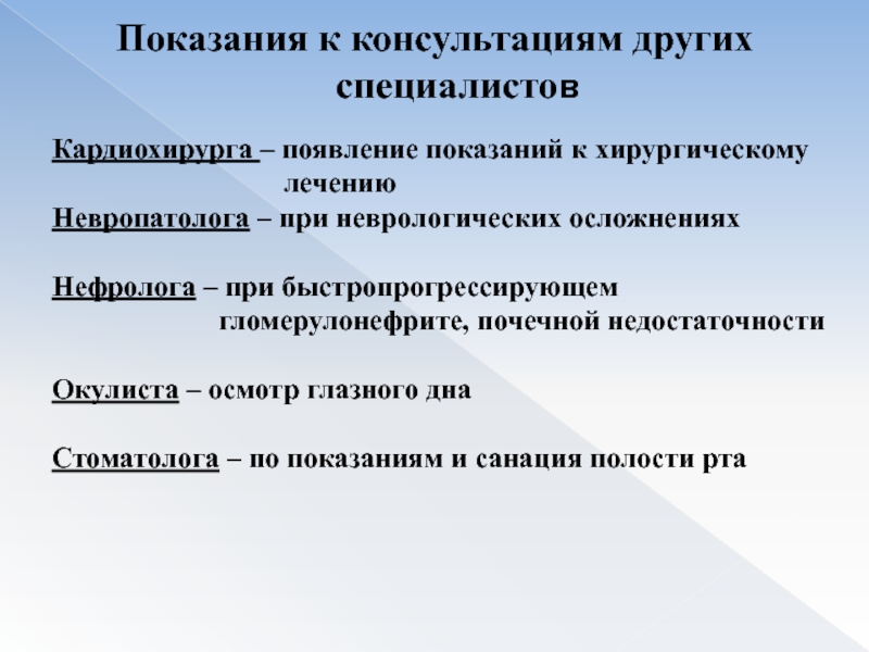 наличии показаний к нему