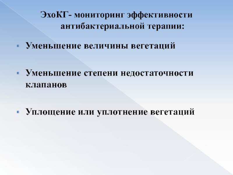 Слайд 52ЭхоКГ- мониторинг эффективности антибактериальной терапии: