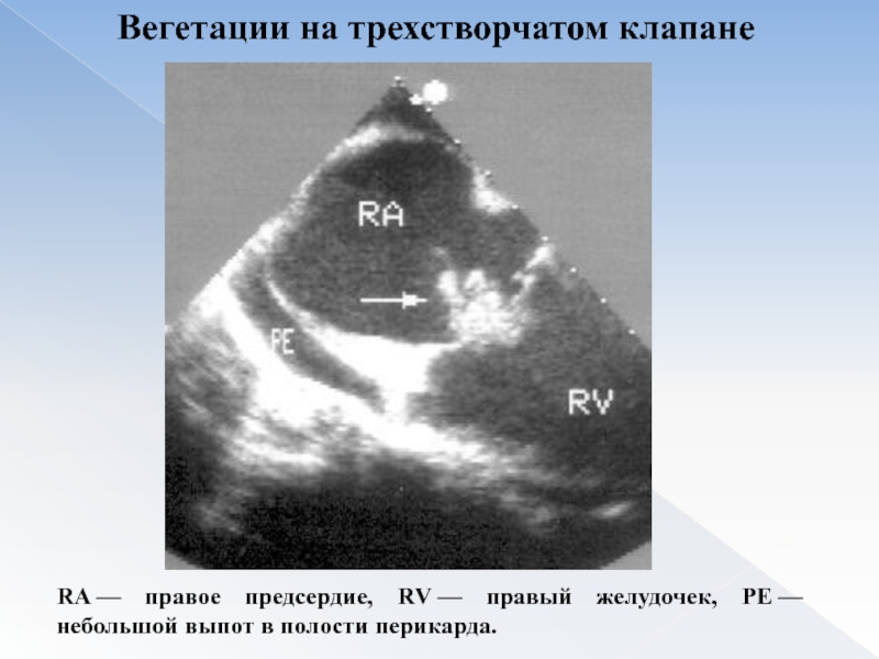 Слайд 16Вегетации на трехстворчатом клапане