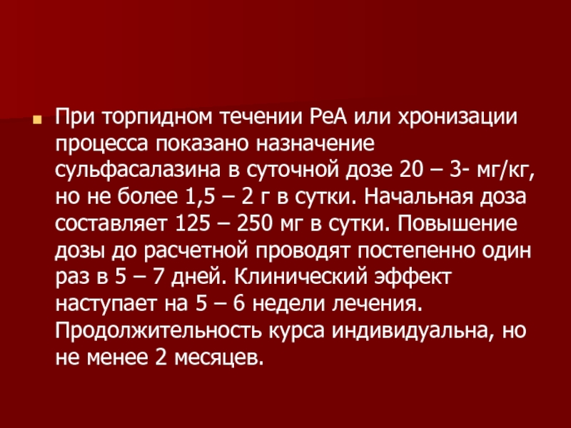 Слайд 38При торпидном течении РеА или хронизации процесса показано назначение сульфасалазина