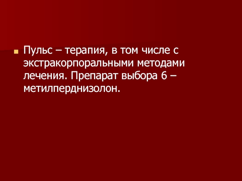 Слайд 50Пульс – терапия, в том числе с экстракорпоральными методами лечения.
