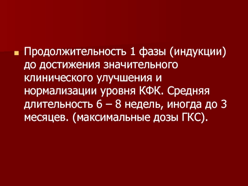 нормализации уровня КФК. Средняя длительность 6 – 8 недель, иногда