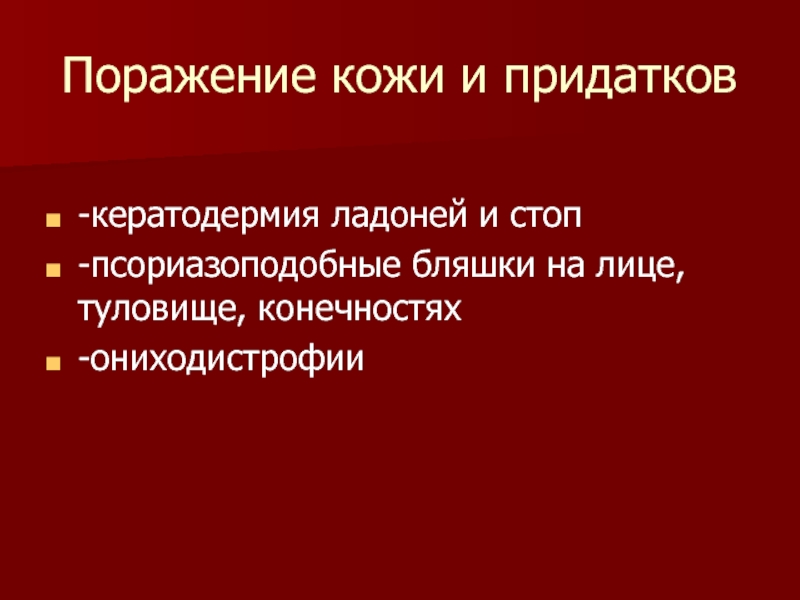 процесс вовлекается глотательная, дыхательная мускулатура, миалгии, поражение внутренних органов, кальциноз.