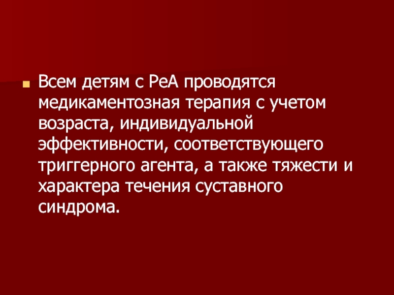 Слайд 25Всем детям с РеА проводятся медикаментозная терапия с учетом возраста,