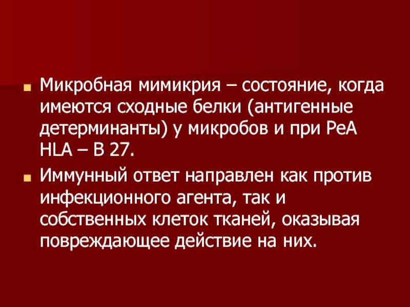 Слайд 7Микробная мимикрия – состояние, когда имеются сходные белки (антигенные детерминанты)