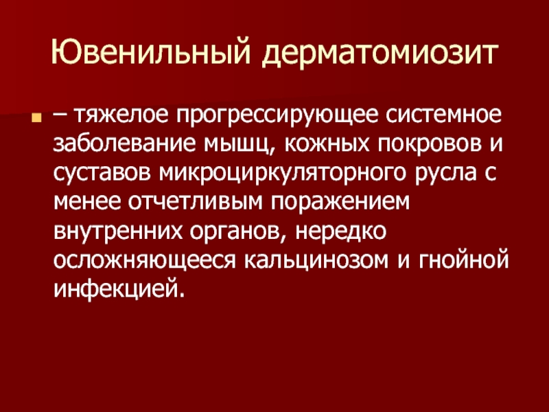 – тяжелое прогрессирующее системное заболевание мышц, кожных покровов и