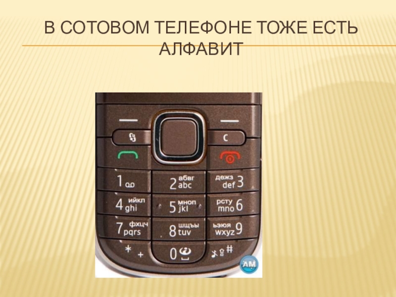 Слайд 18В сотовом телефоне тоже есть алфавит