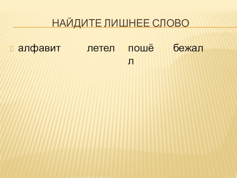 Найдите лишнее слово  алфавитпошёллетелбежал