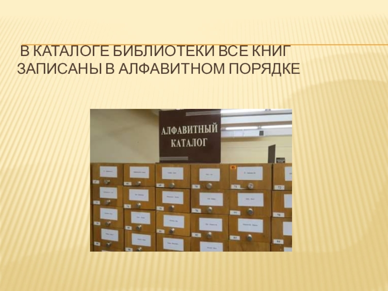 Слайд 12 в каталоге библиотеки все книг записаны в алфавитном порядке