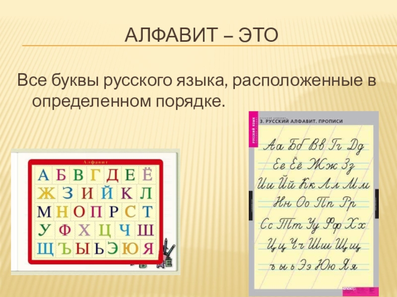 Алфавит – это Все буквы русского языка, расположенные в определенном порядке.