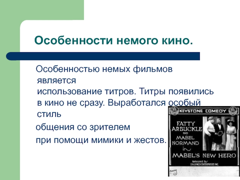 Слайд 8 Особенности немого кино.