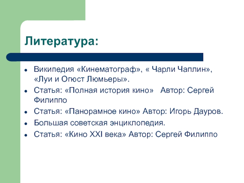 Википедия «Кинематограф», « Чарли Чаплин», «Луи и Огюст Люмьеры».