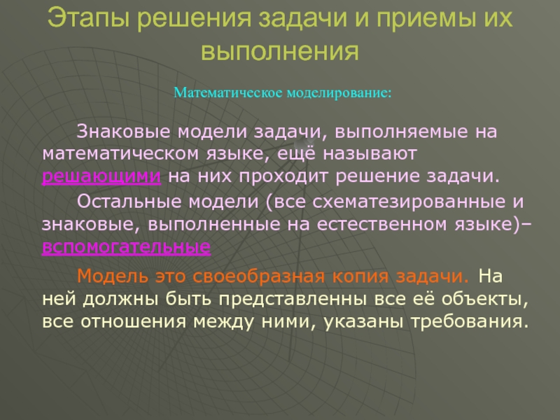 модели задачи, выполняемые на математическом языке, ещё называют решающими на