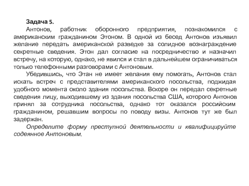 Определите форму преступной деятельности и квалифицируйте содеянное Антоновым.