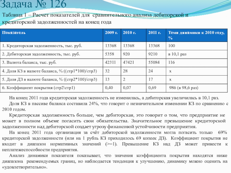 Доля КЗ в пассиве баланса составила 24%, что говорит о незначительном изменении КЗ по сравнению с 2010 годом.