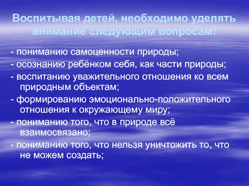 Слайд 5Воспитывая детей, необходимо уделять внимание следующим вопросам: