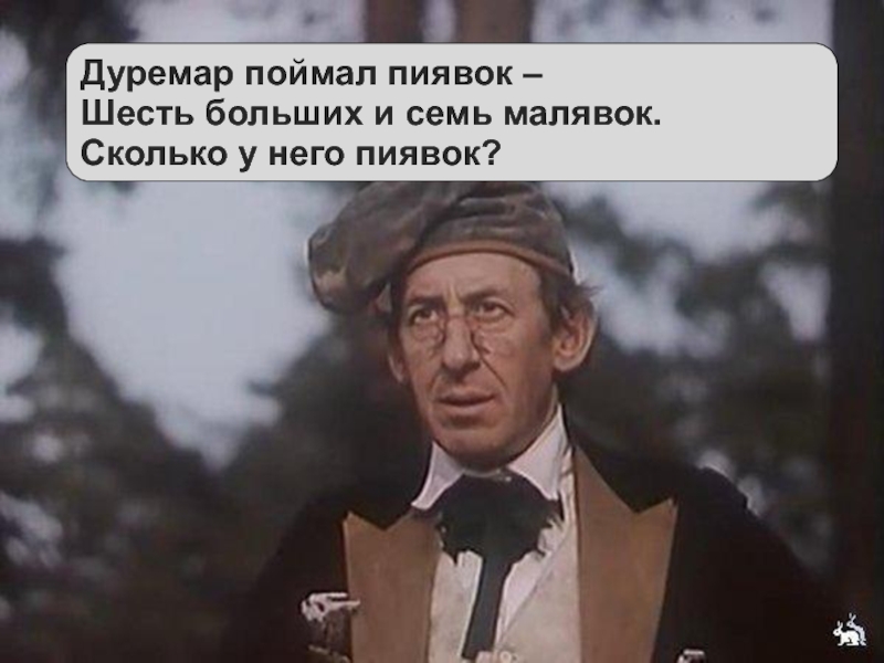 Слайд 7Дуремар поймал пиявок – Шесть больших и семь малявок. Сколько у