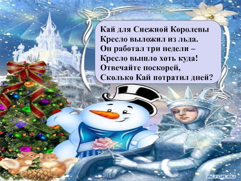 – Кресло вышло хоть куда! Отвечайте поскорей, Сколько Кай потратил дней?