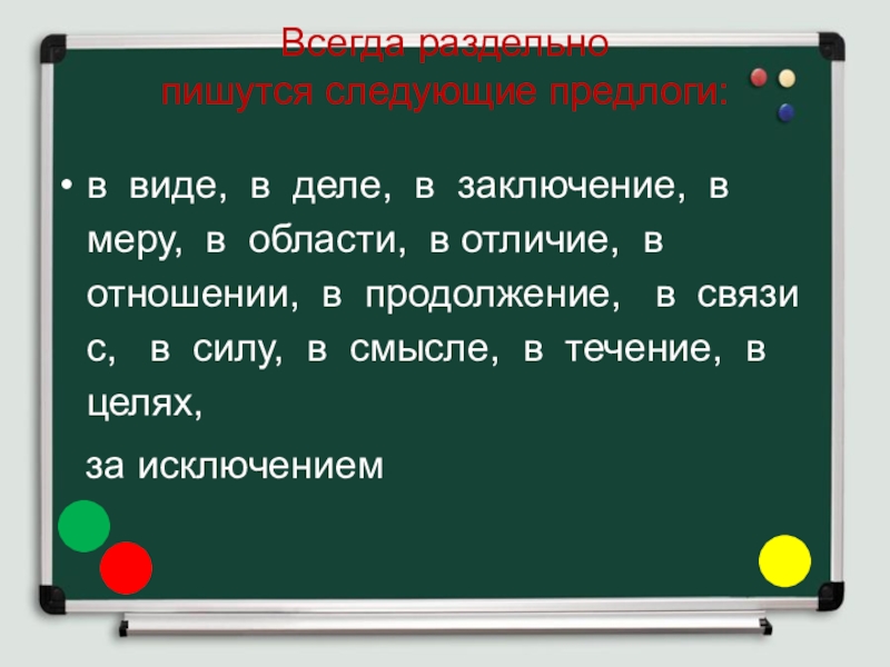 пишутся следующие предлоги: