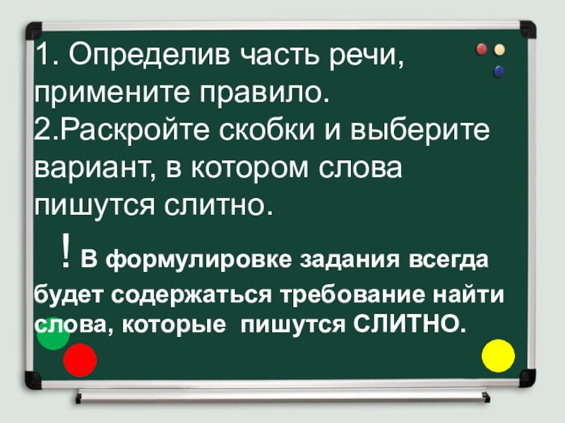 1. Определив часть речи, примените правило.