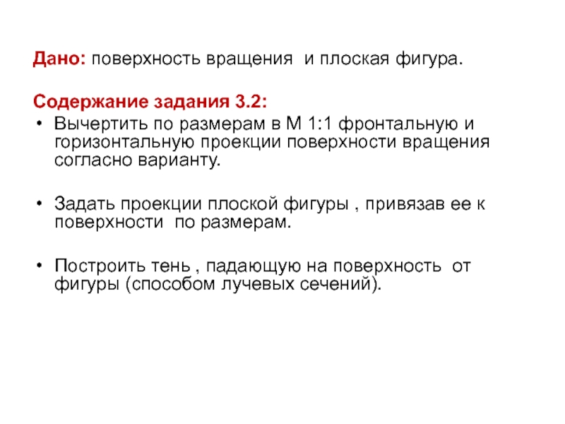 варианту.Задать проекции плоской фигуры , привязав ее к поверхности по размерам.