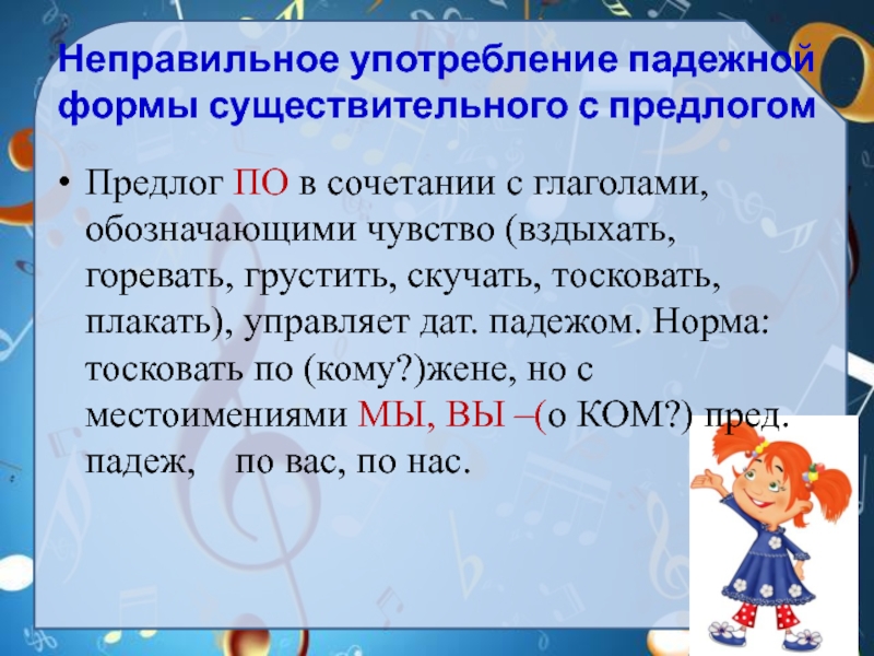1.Неправильное употребление падежной формы существительного с предлогом