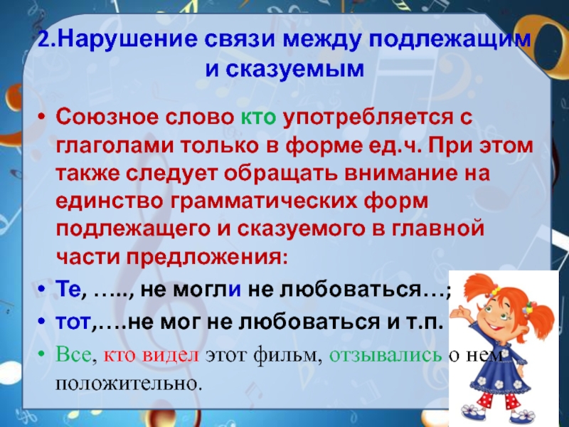 Слайд 82.Нарушение связи между подлежащим и сказуемым