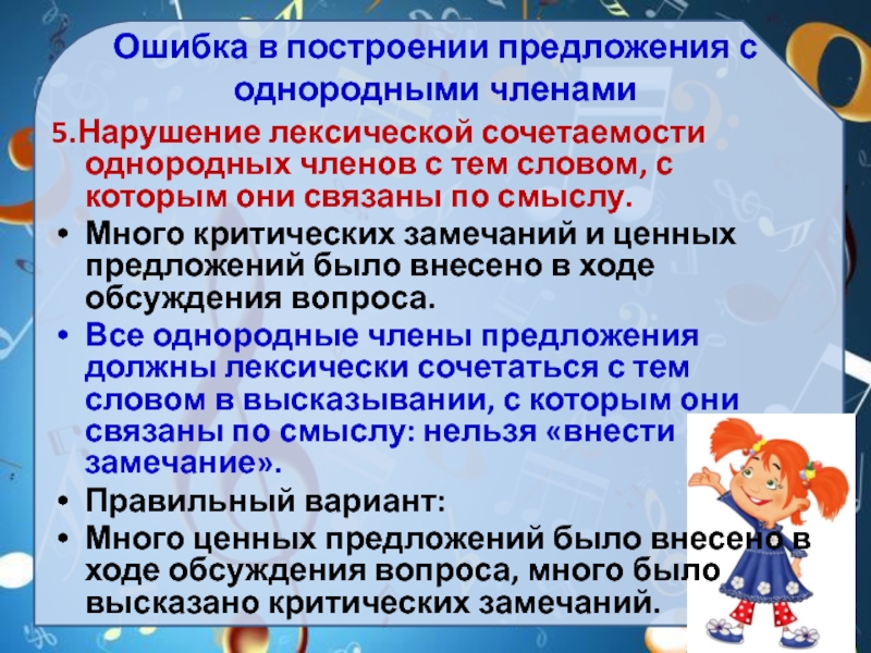 5.Нарушение лексической сочетаемости однородных