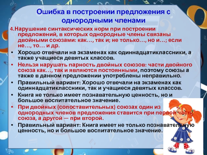 Слайд 103.Ошибка в построении предложения с однородными членами