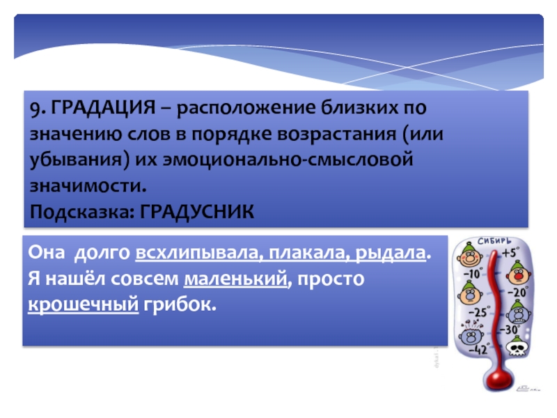Слайд 319. ГРАДАЦИЯ – расположение близких по значению слов в порядке