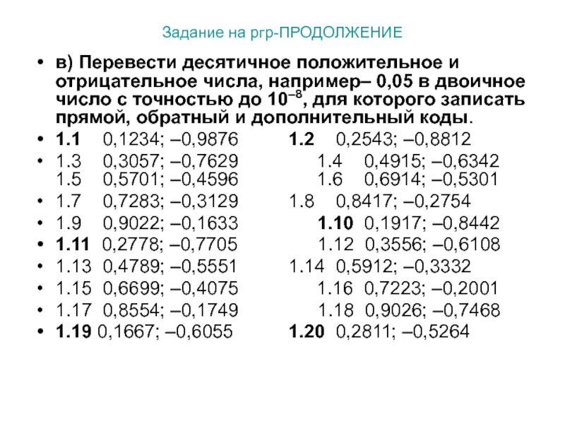 в) Перевести десятичное положительное и отрицательное числа, например–